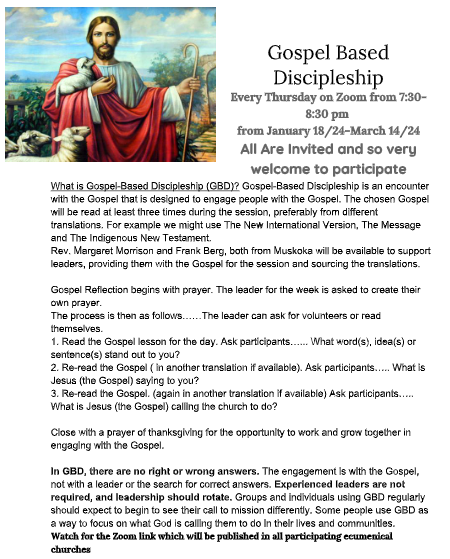***Note that gospel based discipleship has been extended yet again due to its popularity! It has also been moved to Monday nights from 7:30 to 8:30. The Zoom link can be found by clicking on the event in the calendar above.